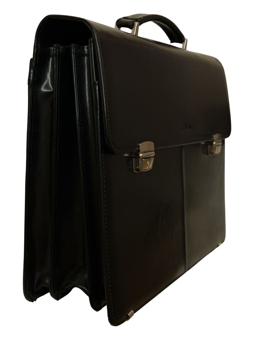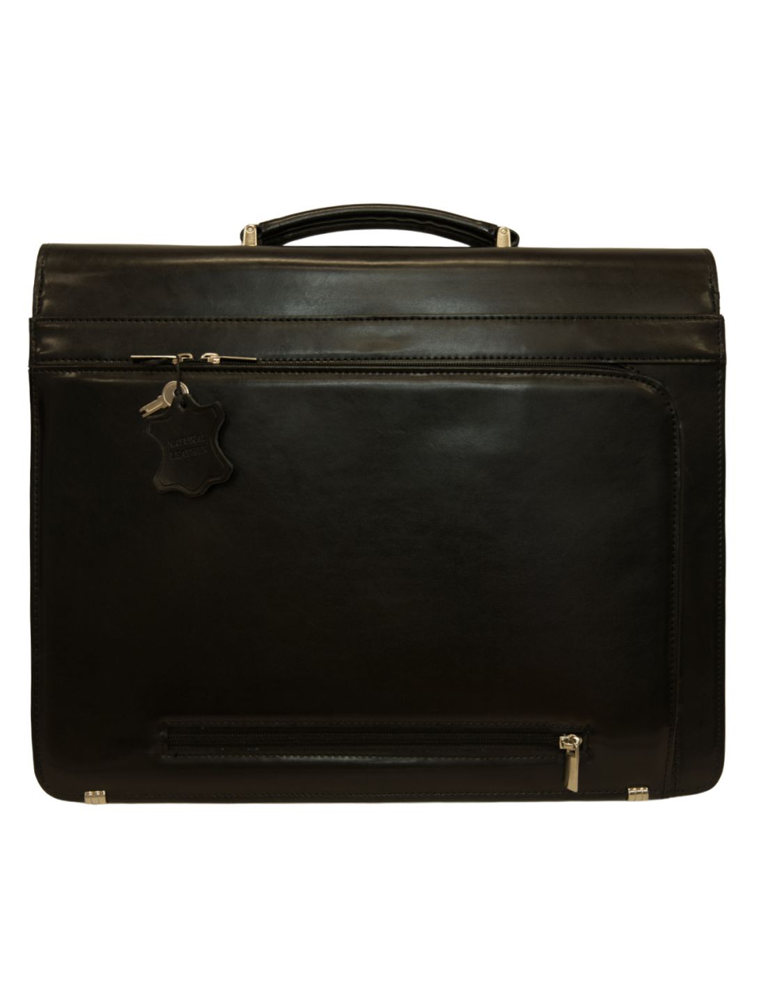 Całość zamykana klapą z dwoma klipsami na zatrzask, z możliwością zamknięcia teczki na klucz.