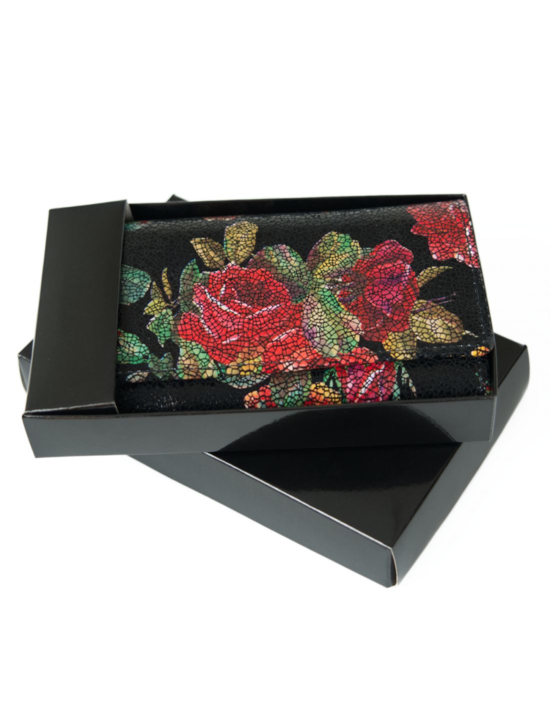 Skórzany portfel damski Cybill marki Stefania, motyw w róże