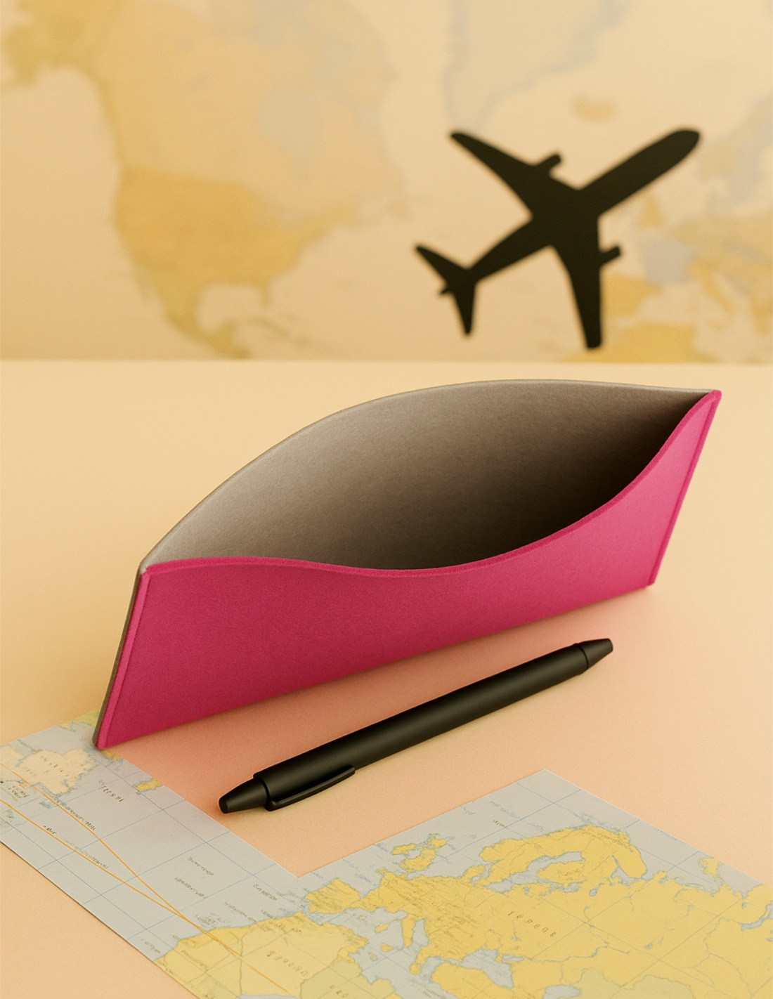Eleganckie etui wykonane z przyjemnego w dotyku, miękkiego filcu, dedykowane podróżującym, którzy cenią sobie estetykę i praktyczność. Idealne na bilety lotnicze, karty pokładowe, dowody oraz inne dokumenty związane z podróżą.