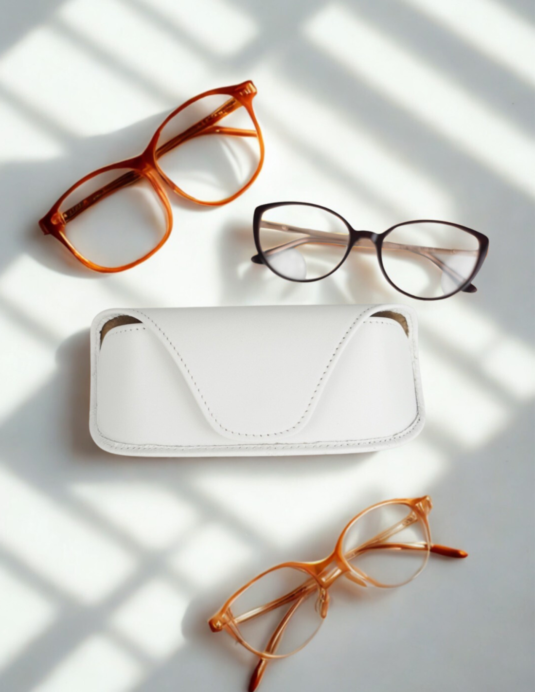 Sztywna forma etui zabezpiecza okulary przed zniszczeniem.