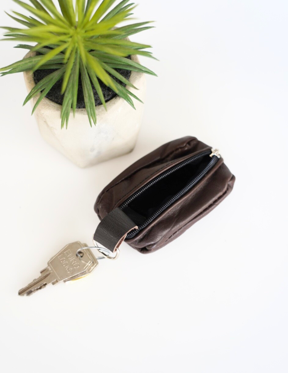 Etui jest dwustronne – z jednej strony znajduje się kieszonka z metalowym kółkiem, które umożliwia wygodne przypięcie kluczy, zapewniając łatwy dostęp i bezpieczeństwo, a z drugiej strony znajduje się praktyczna kieszonka na drobiazgi, takie jak bilon, karta czy złożony banknot zapinana jest na solidny zamek błyskawiczny.
