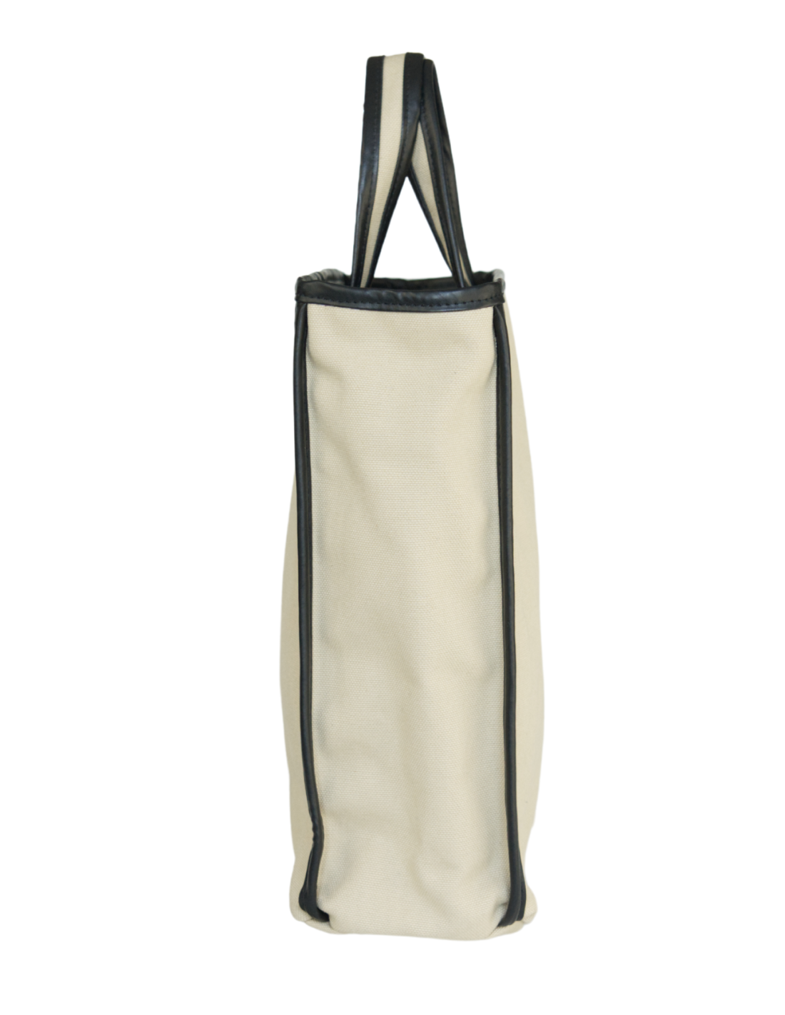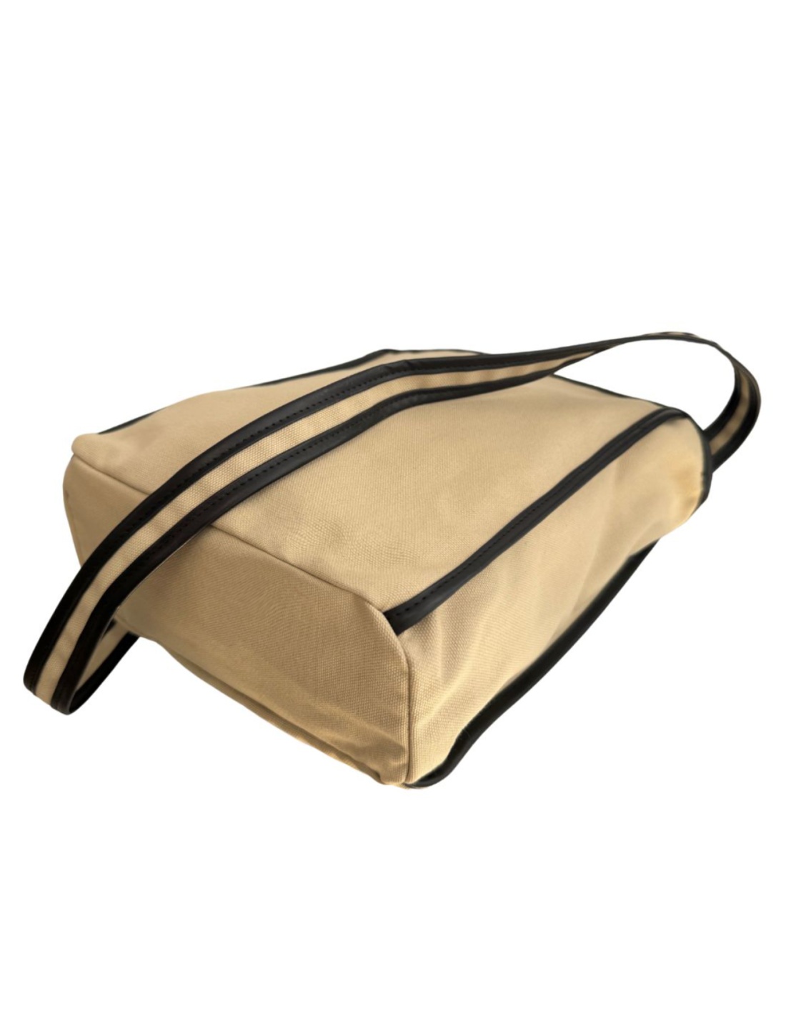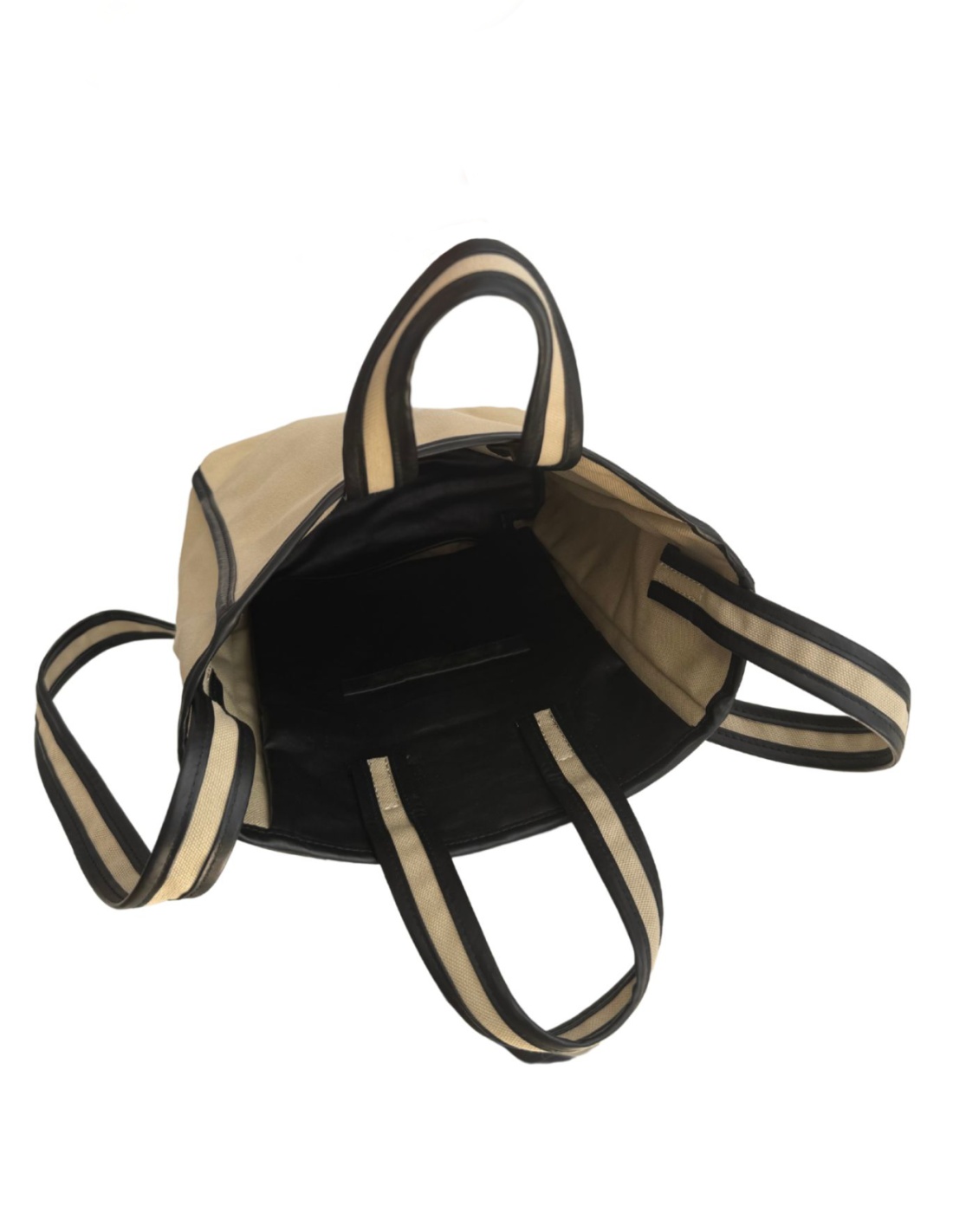 Beżowy len z czarnym obszyciem ze skóry naturalnej