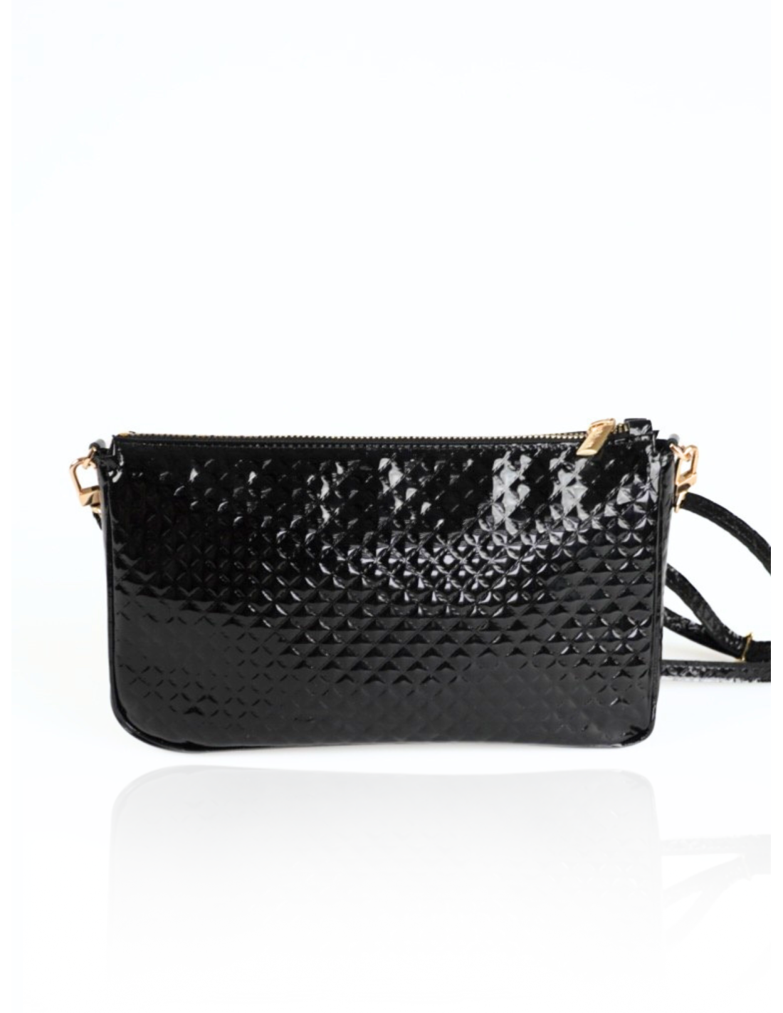 Torebka 2w1 pasuje do eleganckich jak i luźniejszych stylizacji. Jest tak uniwersalna, że możesz ją zabrać praktycznie wszędzie. Wykonana z naturalnej, błyszczącej skóry z tłoczonym wzorem. Każda z torebek zapinana jest na zamek. W środku posiada jedną komorę z bawełnianą podszewkę. W torebkach zmieścisz najpotrzebniejsze, drobne akcesoria na wieczorne wyjście.