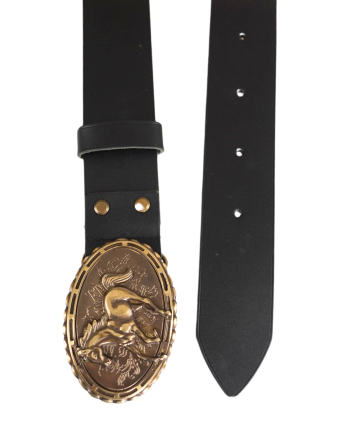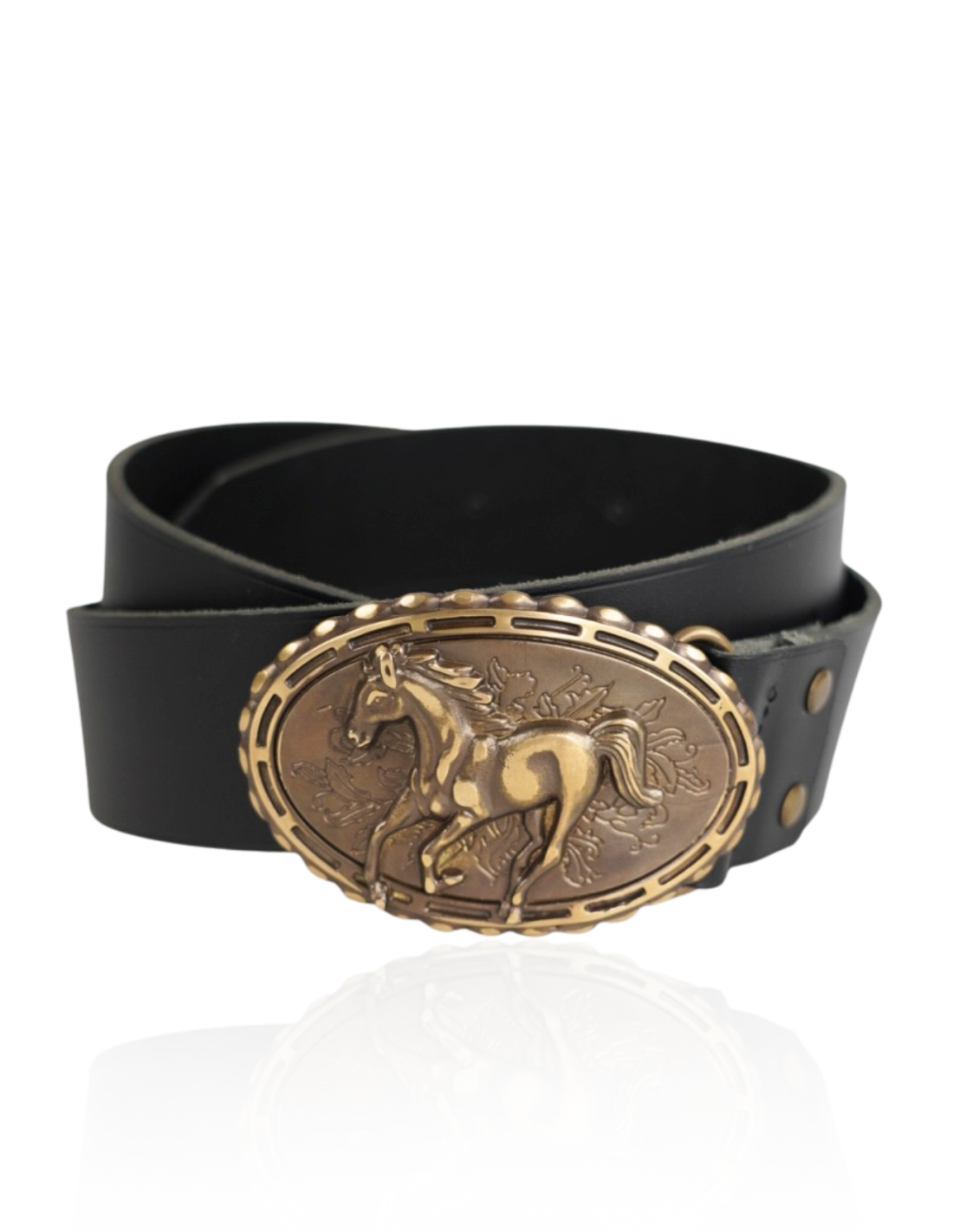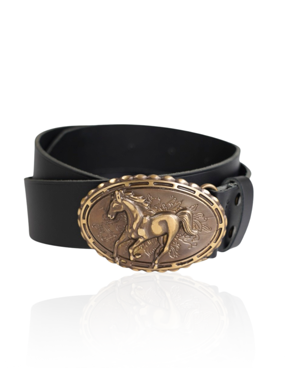 Skórzany pasek męski z ozdobną klamrą koń