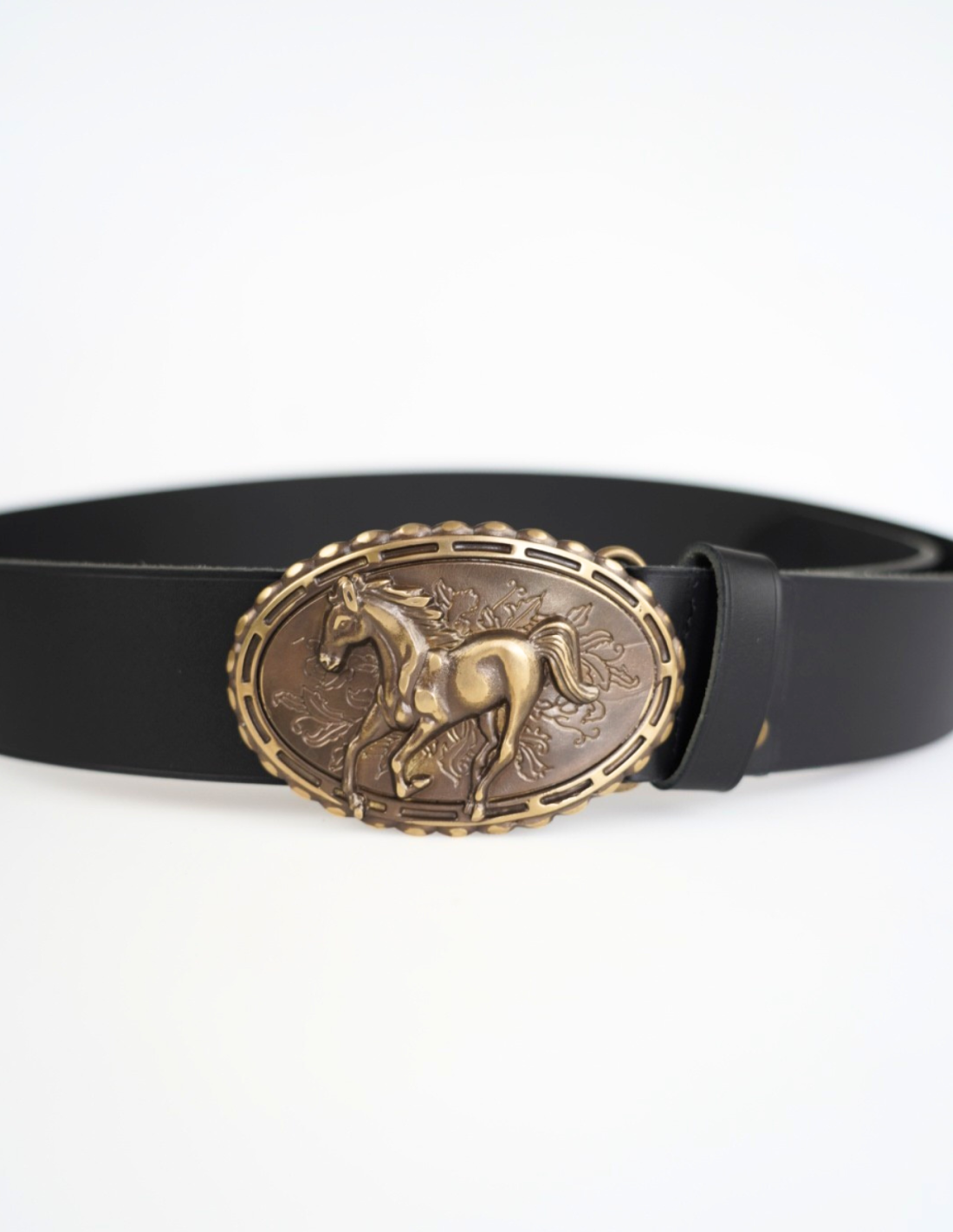 Solidna klamra w kolorze starego złota z detalicznym tłoczeniem konia nadaje paskowi unikalny, westernowy charakter. Idealnie sprawdzi się zarówno do jeansów, jak i do codziennych stylizacji w stylu casual czy country.