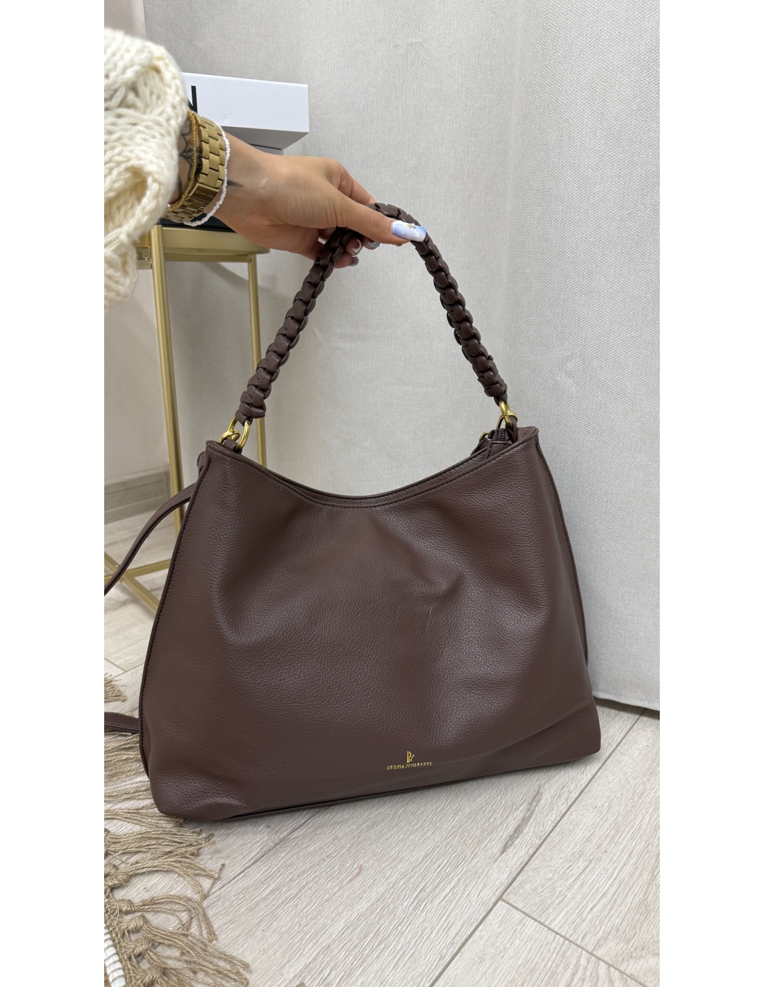 Torebka shopper z plecionym uchwytem