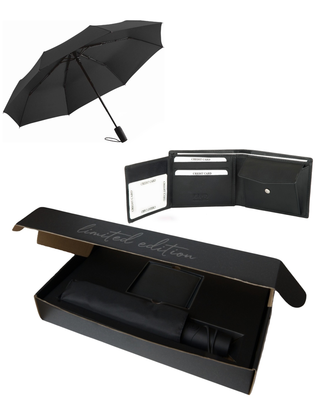 Zestaw prezentowy: skórzany portfel męski i parasolka