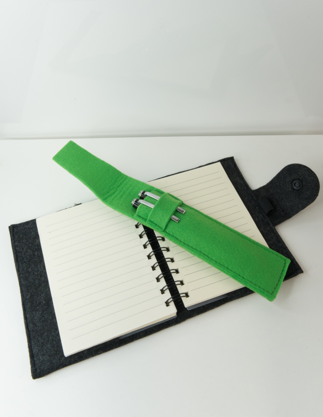 Filcowa okładka/etui na notes A6, zapinana na solidny zatrzask chroniący wnętrze. Okładka posiada także funkcjonalny uchwyt na pióro lub długopis. Produkt występuje w klasycznym, stonowanym kolorze. Filc to idealny sposób na ochronę zeszytów/notesów przed zniszczeniami, który doskonale sprawdzi się do pracy, szkoły lub na uczelnię.