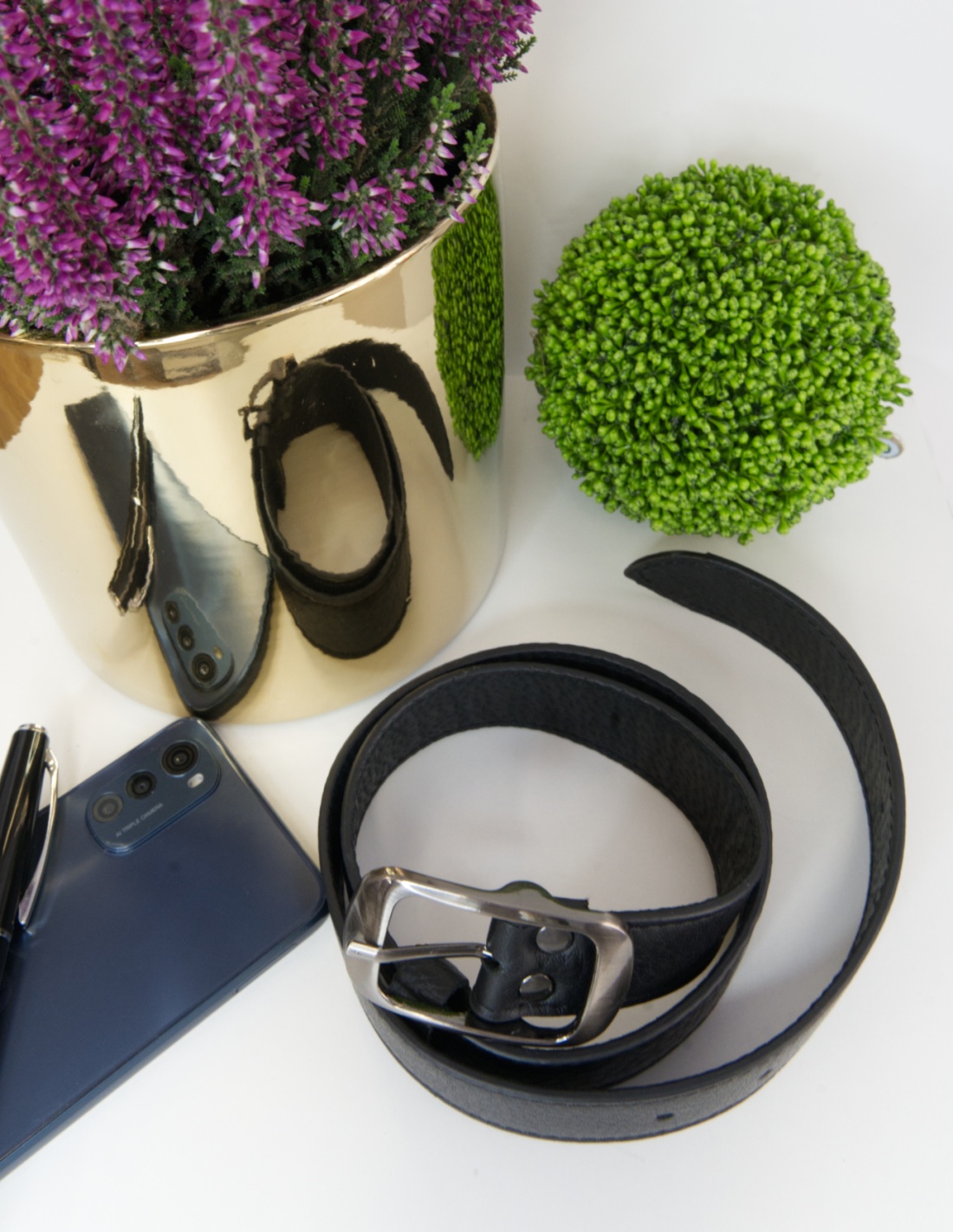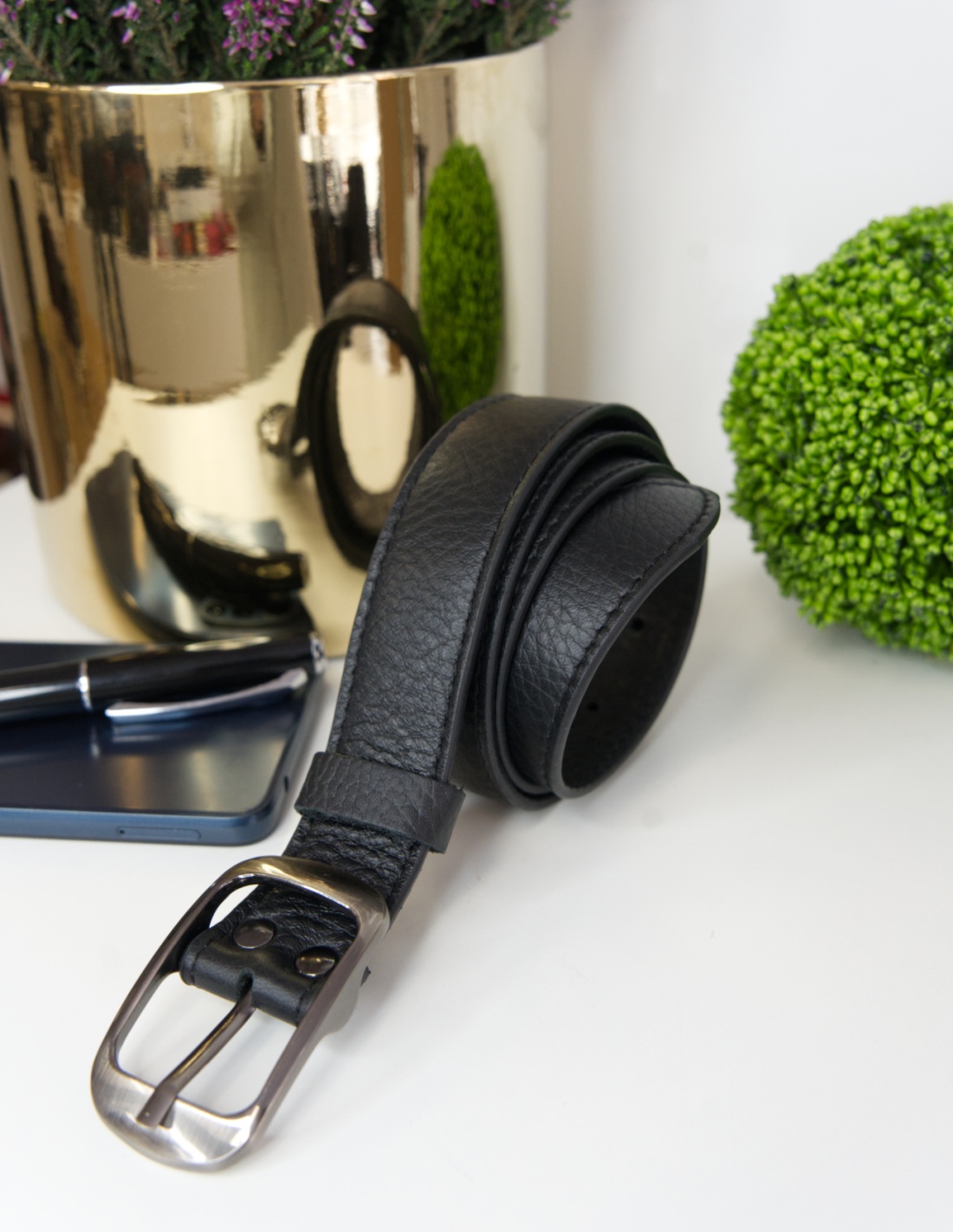 Pasek wykonany z wysokiej jakości skóry naturalnej, groszkowej, która charakteryzuje się niezwykłą miękkością.