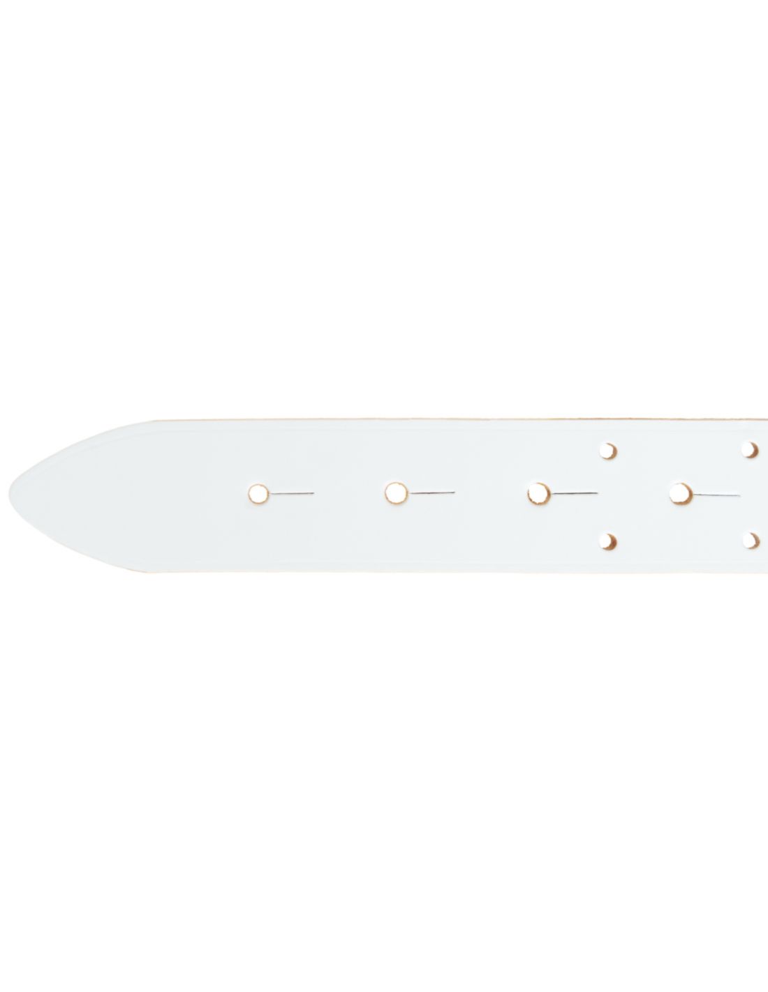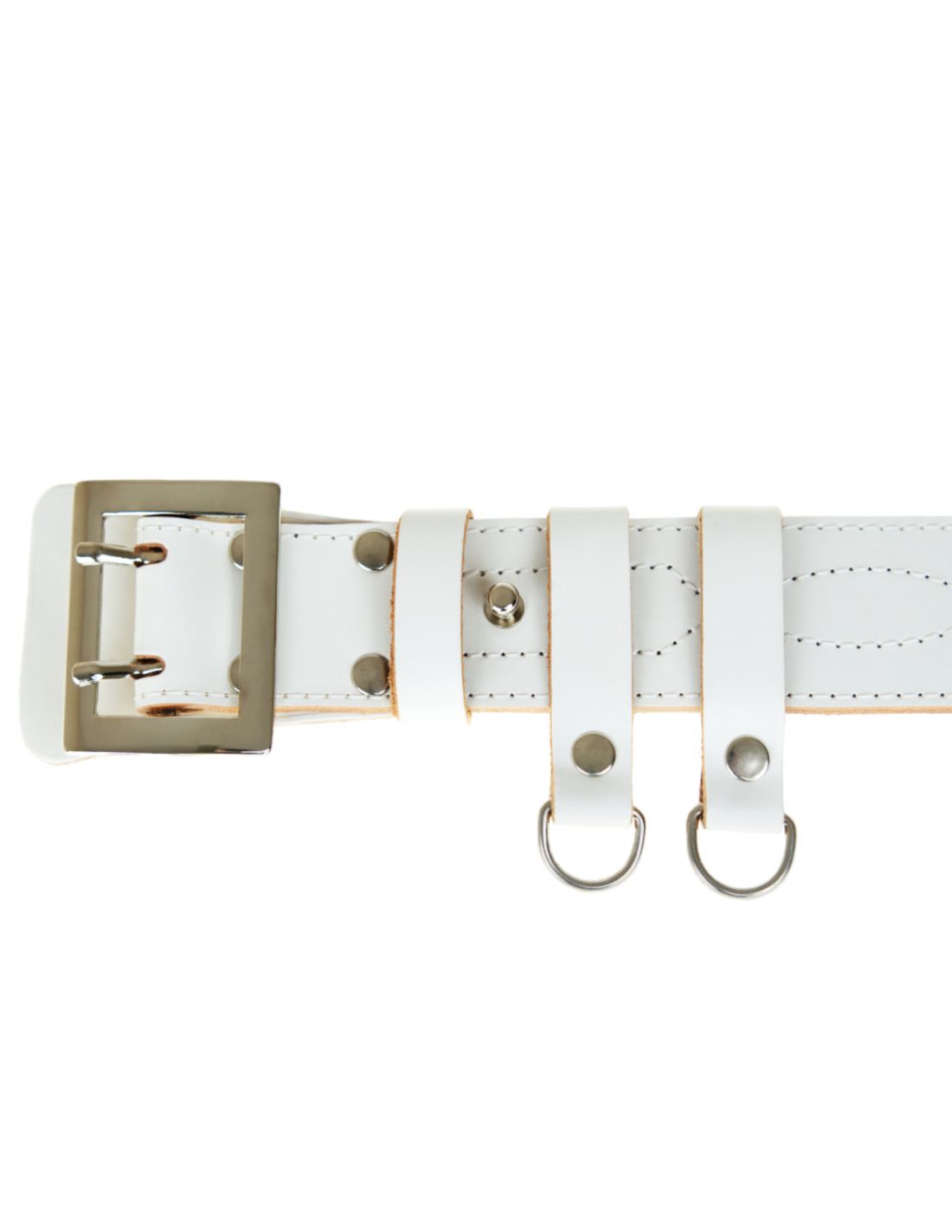 Pas wykonany ze skóry naturalnej z malowanym licem w białym kolorze, grubości od 3,4 do 3,6 mm. Poszczególne elementy łączone są nitami (o średnicy 5 mm). Pas wykończony jest ozdobnym szyciem widocznym z obu stron, który dodatkowo pełni rolę wzmacniającą wytrzymałość pasa. Od wewnętrznej strony naszyta jest dodatkowa warstwa ze skóry świńskiej, która zwiększa trwałość i zapewnia cyrkulację powietrza - oddychanie skóry.