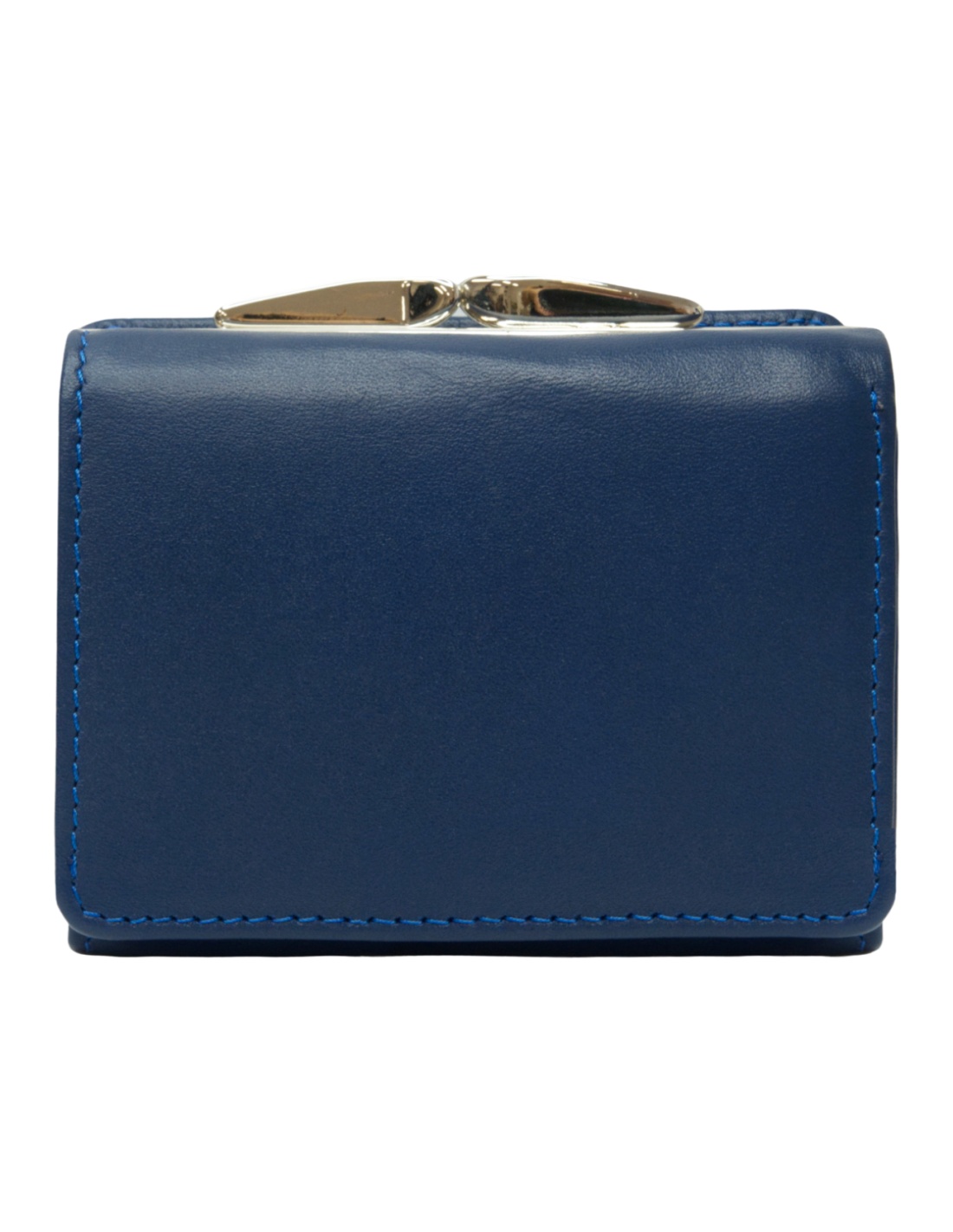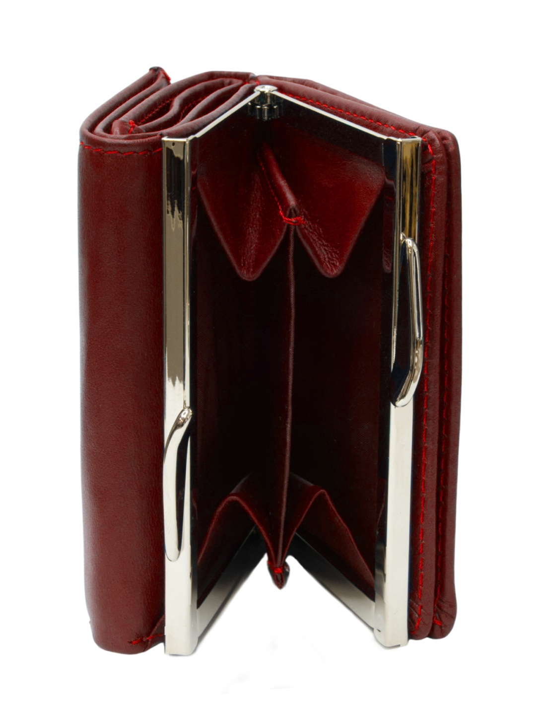 Kieszonka na monety zamykana na bigiel, znajduje się ona w zewnętrznej części portfela, co ułatwia szybki dostęp do drobnych. We wnętrzu portfela są kieszonki, miejsce na karty, dokumenty, zdjęcie oraz banknoty.