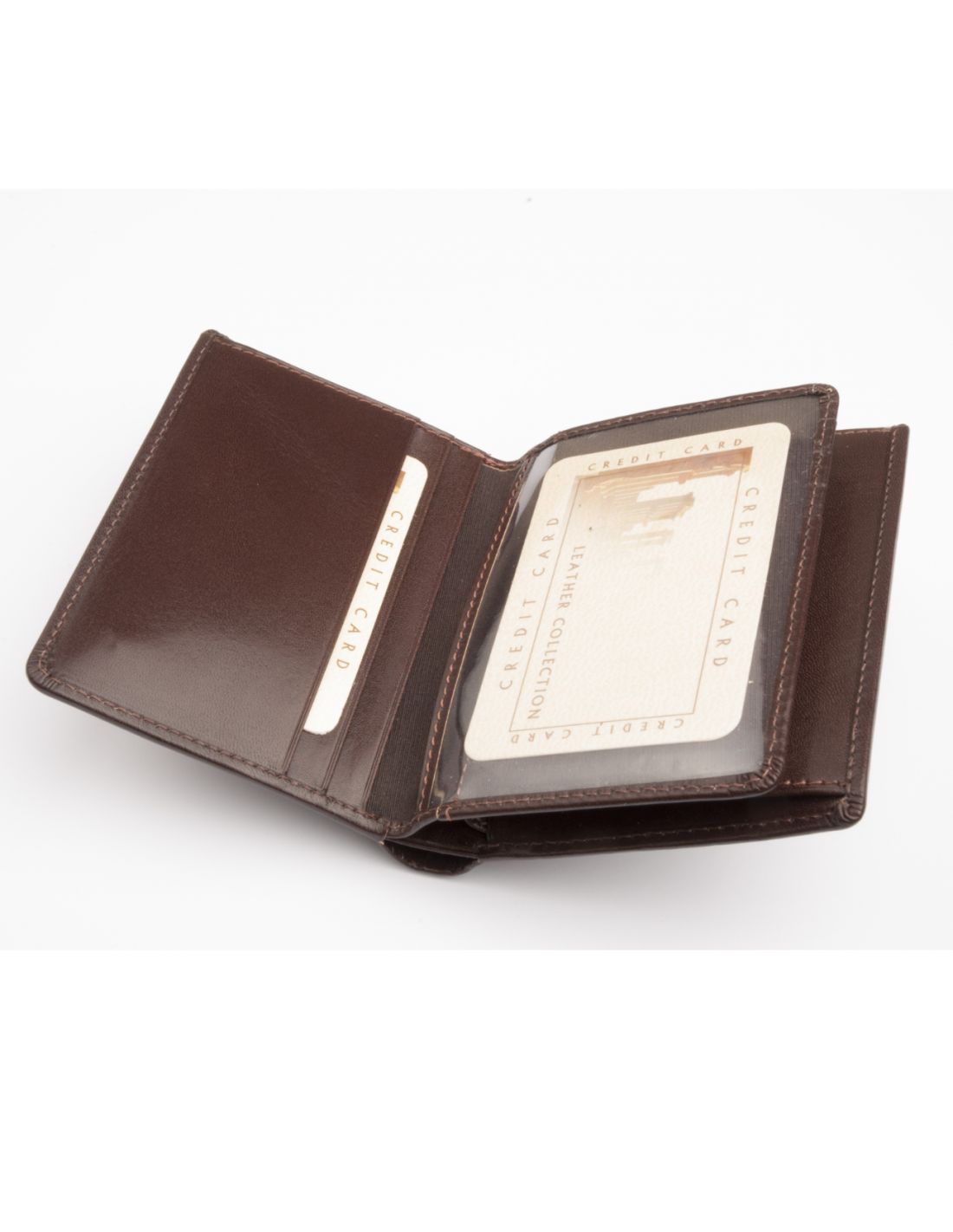 Kieszeń na monety zapinana na zatrzask. Okienko ID na dokument lub zdjęcie. Jedna przegroda banknoty. Sześć miejsc na karty płatnicze i cztery płaskie kieszenie.