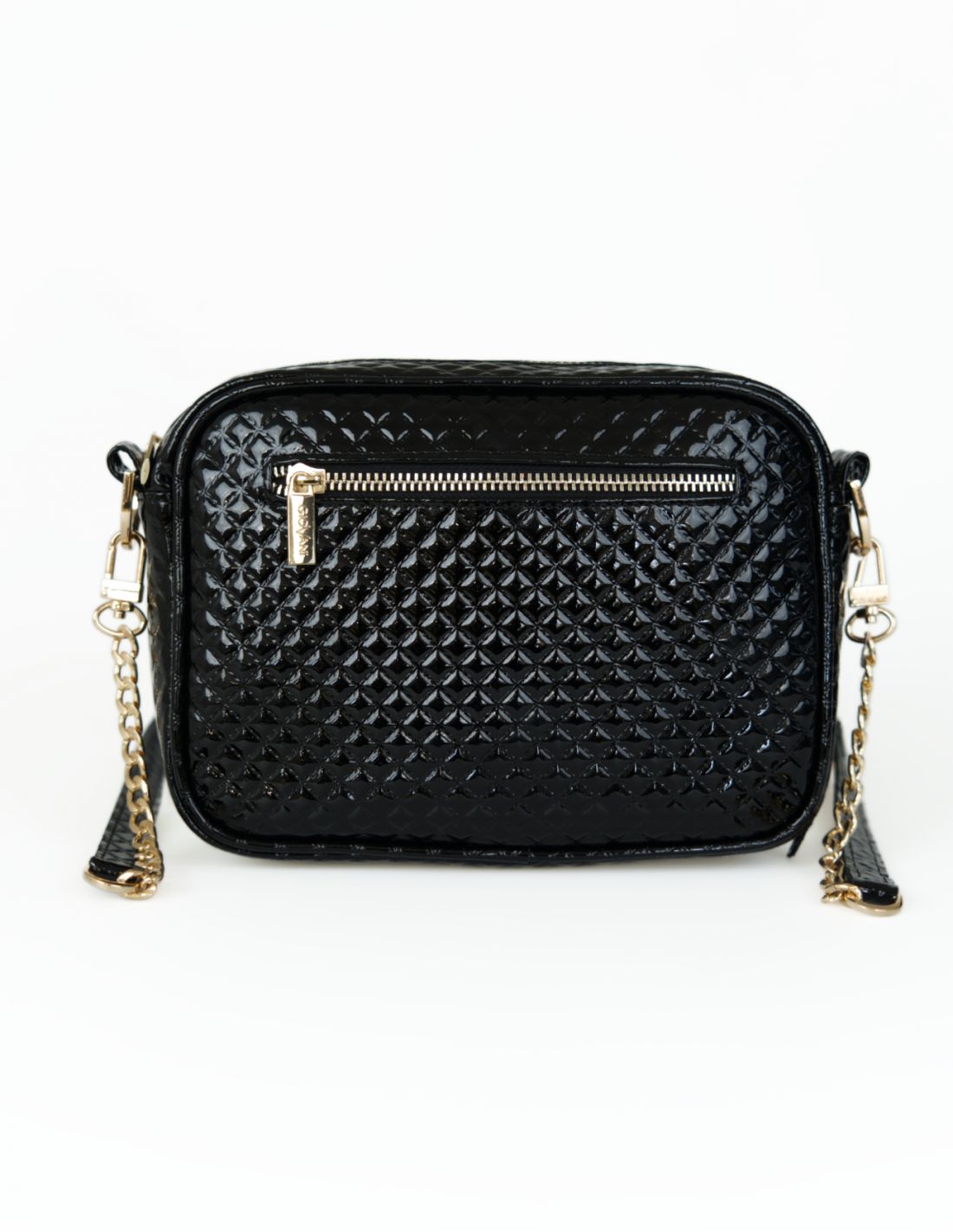 Nasz model pikowanej torebki ma prostokątny kształt i jest wykonany z lakierowanej skóry. Skóra ta została przepikowana w regularne wzory, tworząc charakterystyczne kanały. Pikowanie jest małe i delikatne, ma kształt rombów.