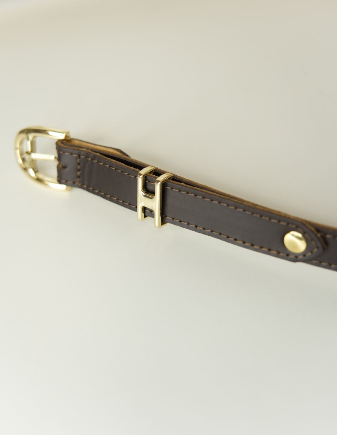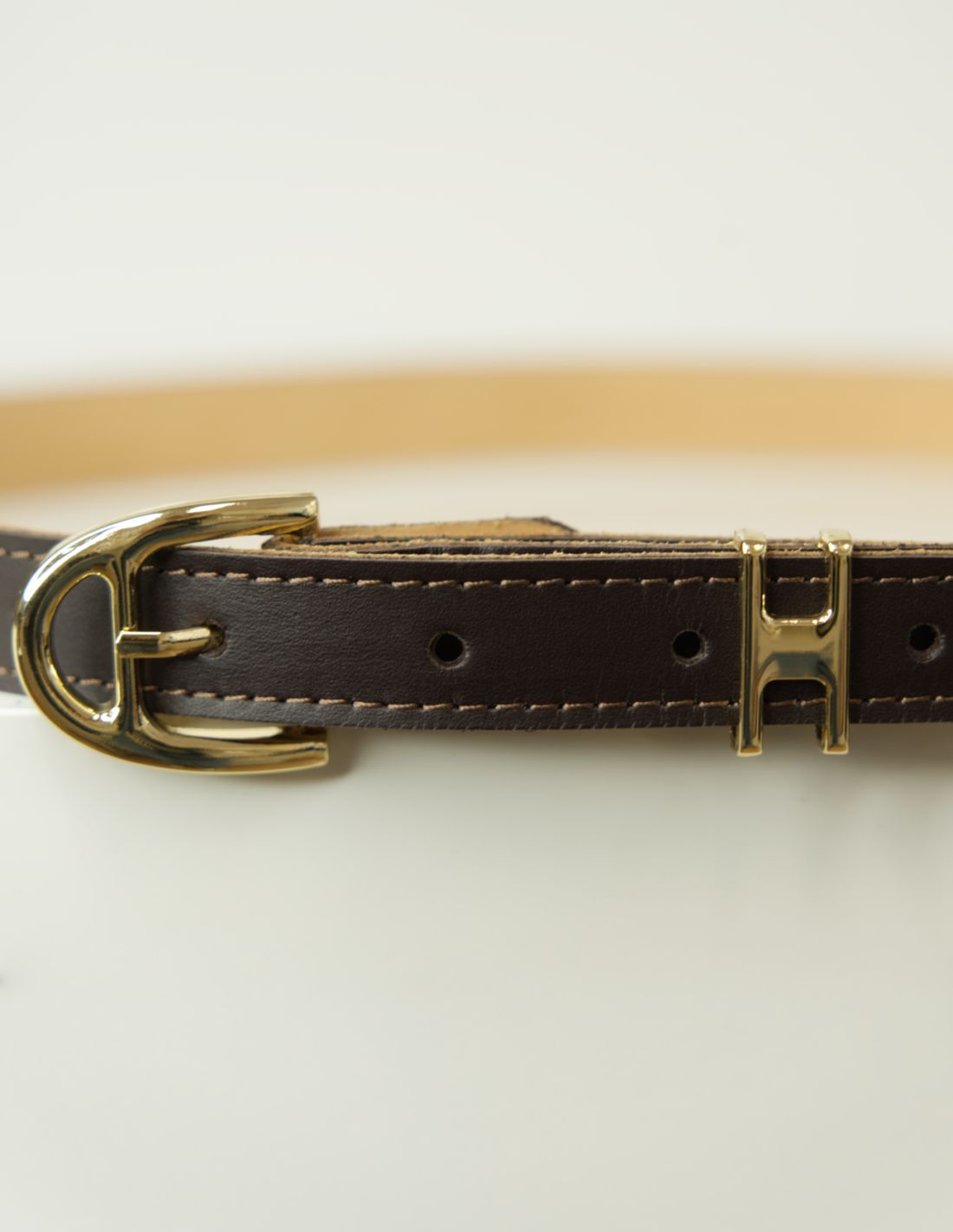 Ta metalowa szlufka w kształcie litery H dopełnia estetykę paska, dzięki niej nabiera on eleganckiego charakteru, który w sposób subtelny, lecz efektowny, przyciąga uwagę i dodaje blasku. Delikatna sprzączka współgra z minimalistycznym designem paska, tworząc harmonijną całość.