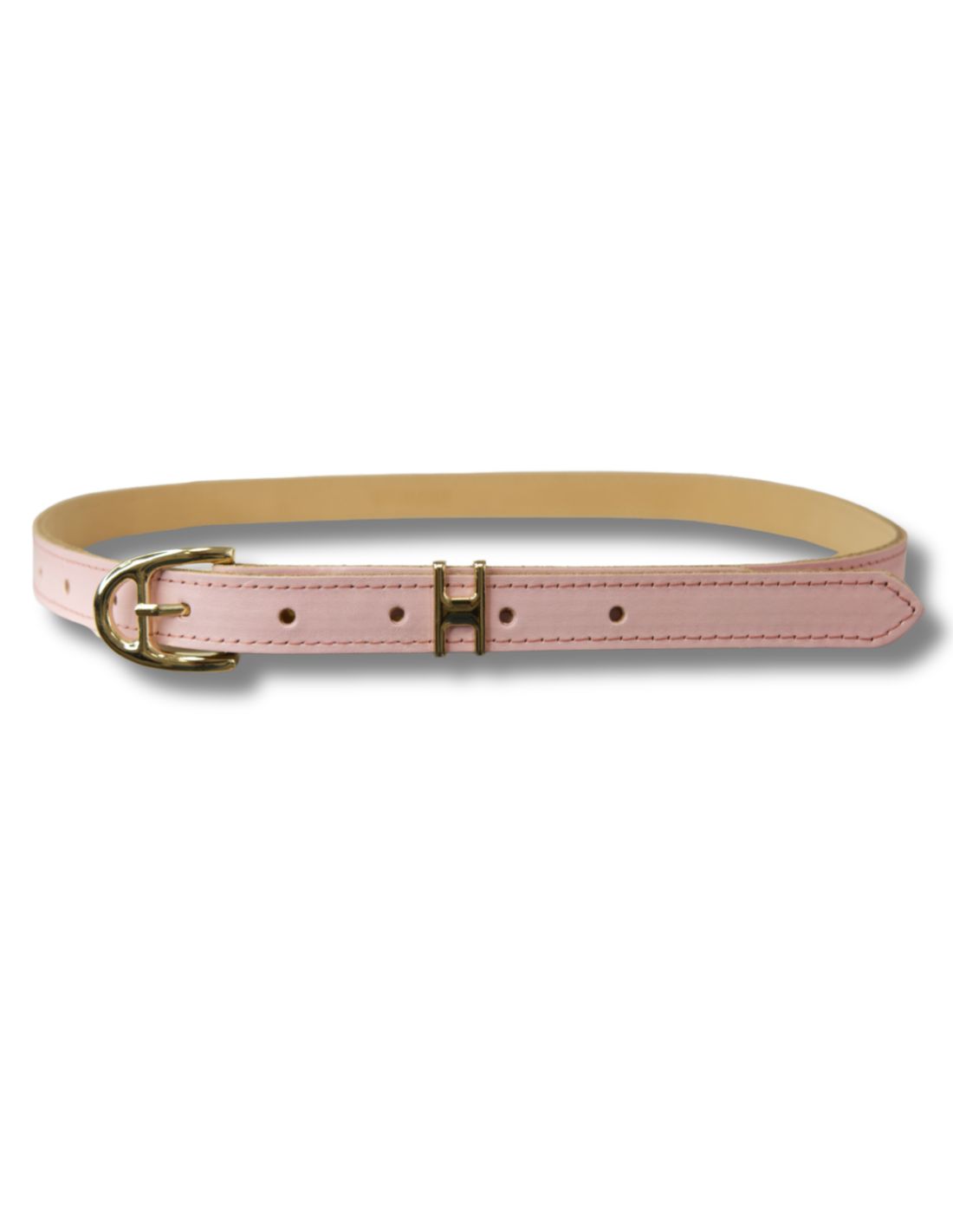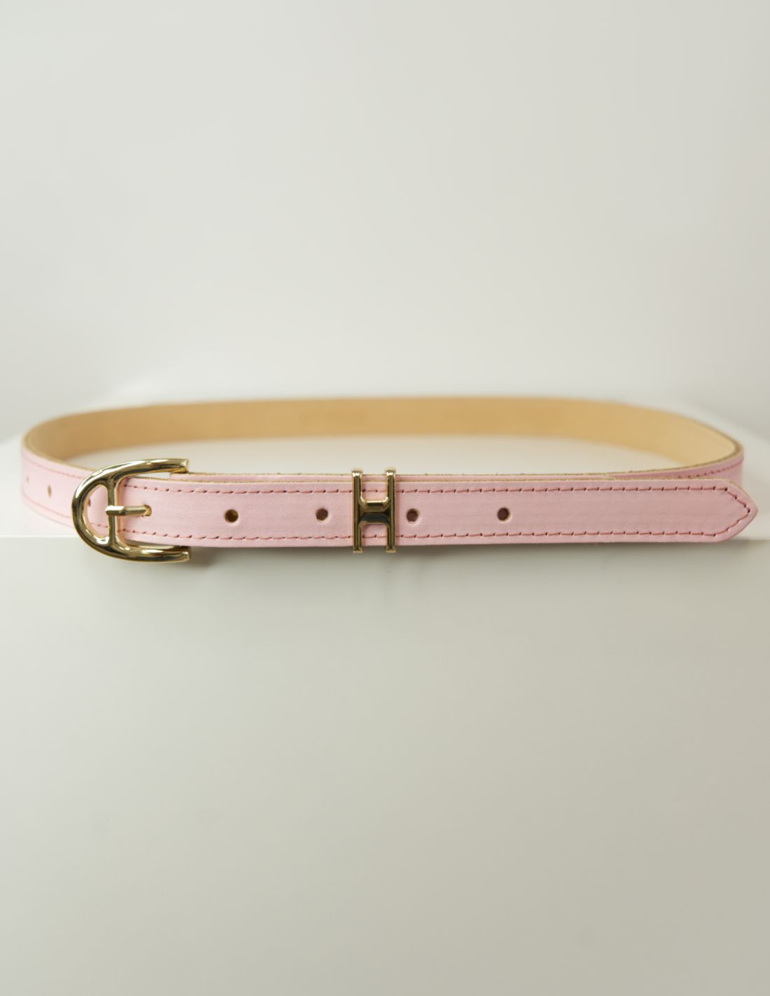 Ta metalowa szlufka w kształcie litery H dopełnia estetykę paska, dzięki niej nabiera on eleganckiego charakteru, który w sposób subtelny, lecz efektowny, przyciąga uwagę i dodaje blasku. Delikatna sprzączka współgra z minimalistycznym designem paska, tworząc harmonijną całość.