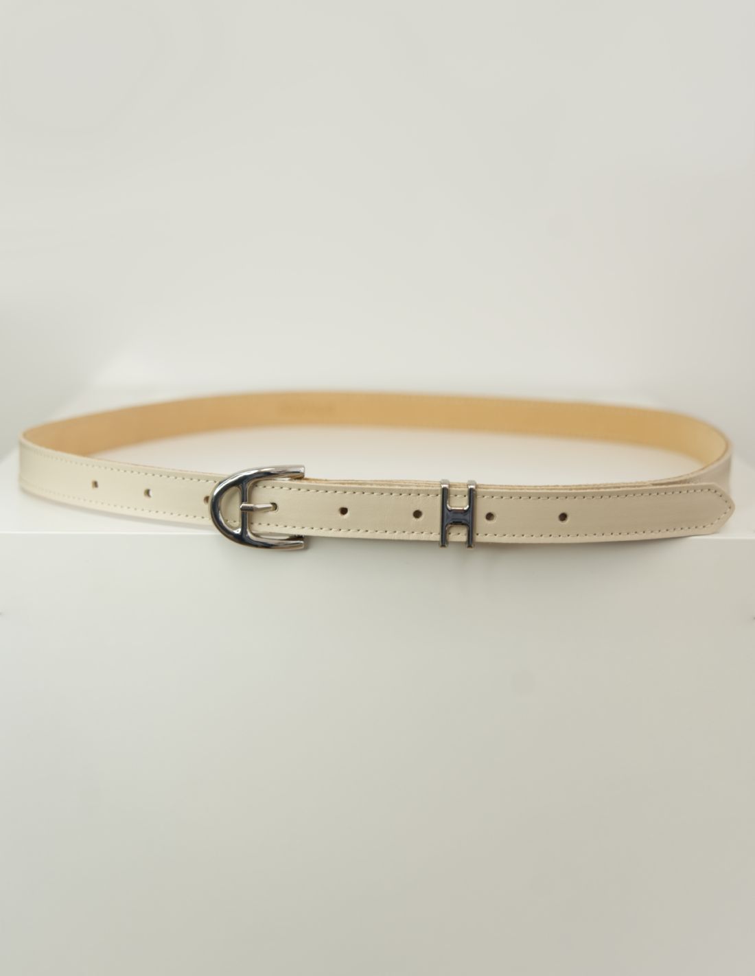 Ta metalowa szlufka w kształcie litery H dopełnia estetykę paska, dzięki niej nabiera on eleganckiego charakteru, który w sposób subtelny, lecz efektowny, przyciąga uwagę i dodaje blasku. Delikatna sprzączka współgra z minimalistycznym designem paska, tworząc harmonijną całość.