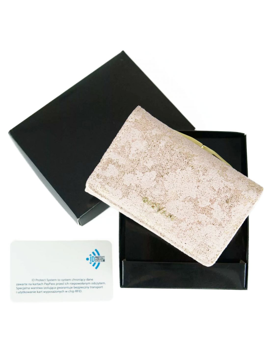 Mały portfel damski skórzany GioVani, z ochroną RFID, z biglem